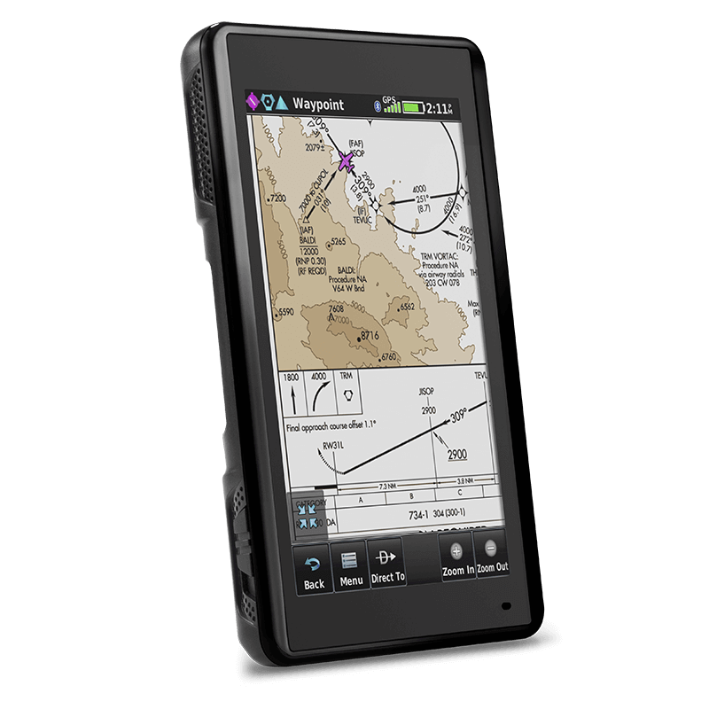 | Affordable feature-rich navigation, stunning display and streamlined database updating This compact 5-inch capacitive touchscreen boasts a bright, sunlight readable display complete with rich, interactive maps and a built-in GPS/GLONASS receiver that can be viewed in portrait or landscape modes for optimum customization. The aera 660 encompasses many of the features of the renowned aera® and GPSMAP® aviation portable series, adding Connext® wireless capabilities, Garmin WireAware™ wire-strike avoidance technology and more. Cost-effective database options along with built-in Wi-Fi® database updating capabilities allow customers to more easily access the most up-to-date data, including daily U.S. fuel prices. Bluetooth® supports the display of ADS-B “In” traffic and weather1 from a variety of sources, including the GDL® 39/GDL 39 3D, Flight Stream and the GTX 345 ADS-B transponder.![]() Dedicated Compact Portable Navigator The aera 660 features a 5-inch capacitive touchscreen display that is optimized for cockpits and various types of flying. An elegant yet rugged design allows the aera 660 to withstand harsh environments, meeting stringent temperature tests and helicopter vibration standards. The Garmin signature direct-to feature is always available so it’s easy to command navigation functions or find nearest airports from any page. A mini-USB connector, microSD™ card slot and removable battery accompany a dedicated power button along the bezel of the aera. Depending on settings and external connections, pilots will receive up to 4 hours of battery life on a single charge. An intuitive user interface resembles that of the popular GTN™ 650/750 touchscreen series, aera 795/796 series and the Garmin Pilot™ app, so pilots can easily transition between the aera 660 and other Garmin products in the cockpit.3D Vision The 3D Vision page within the aera 660 leverages a worldwide terrain database to create a rich, 3D representation of rising terrain near the aircraft, while overlaying GPS-derived airspeed, altitude and vertical speed alongside flight plan information. 3D Vision also displays lateral and vertical (VNAV) deviation bars and includes a 360-degree HSI, which displays course deviation, track, bearing and more.Bearing pointers can be manually configured to identify the nearest airport, complete with distance information. When connected to the GTX 345, GDL 39 3D or Flight Stream, the 3D Vision presentation is further enhanced with the display of pitch, roll and slip-skid information. A pilot-selectable presentation optionally displays flight instruments in round gauges or tapes overlaid on the 3D topographic landscape.Connext Wireless Connectrivity Wireless connectivity options set the aera 660 even further apart from other portables on the market. Wireless database updating capabilities add to the unique feature set of the aera 660. When connected to Wi-Fi, pilots can easily download and update aviation databases without the need to physically connect the aera to a computer. Additionally, the aera 660 supports connectivity with the Garmin VIRB® XE HD action camera, so pilots can control recording and take photos. When paired with the GTX 345, Flight Stream or the GDL 39/GDL 39 3D, ADS-B traffic and weather1 is wirelessly transferred and displayed on the aera 660. ADS-B traffic information may be viewed on the moving map, IFR/VFR charts and dedicated traffic pages, which also leverages patent-pending features such as TargetTrend™ and TerminalTraffic™. Traffic trajectories and potential conflicts are easier to identify with TargetTrend, which incorporates relative motion technology to help pilots visualize the future position of nearby traffic targets relative to the aircraft. The traffic picture is further enhanced during taxi, takeoff and landing with TerminalTraffic, which detects and displays other aircraft or ground vehicles on runways or taxiways that are also broadcasting ADS-B position information. SafeTaxi® geo-referenced airport diagrams also aid in situational awareness by identifying runways, taxiways, FBO’s, hangars and more relative to the aircraft’s position on the airport surface. Subscription-free Flight Information Service-Broadcast (FIS-B) weather1 products may simultaneously be overlaid on the map page and dedicated weather pages for easy interpretation. Weather-related decision-making is easier with the aera 660, which helps pilots interpret datalink NEXRAD radar more easily by animating this imagery. Additionally, multiple weather products can be overlaid on a single weather page for better analysis.Fuel Prices, Global Charting Options and MoreComprehensive chart options provide pilots with an easy path to a paperless cockpit in a compact device, which may be qualified for use as either a Class I or Class II Electronic Flight Bag (EFB). Geo-referenced IFR enroute, VFR sectional charts and Garmin FliteCharts® terminal procedures are available as part of the expansive database offerings associated with the aera 660. Using FliteCharts, pilots can easily view departure procedures (DPs), standard terminal arrival routes (STARs) and geo-referenced approach charts. Additionally, Garmin ChartView™ enables the display of Jeppesen charts with an optional subscription from Jeppesen. U.S. fuel price data is easily accessible on the map or within the airport directory database, so it’s easy to identify the lowest price of 100 LL and Jet A in the area. Similar to features found within other Garmin products, patented Smart Airspace™ is included in the aera 660 feature set. Smart Airspace highlights the airspace nearest the aircraft’s current altitude and de-emphasizes non-pertinent airspace so pilots can quickly identify their location relative to the airspace around them.Using the optional global navigation database and many regional charting options, the aera 660 provides worldwide versatility. The aera 660 is available in 4 regional versio